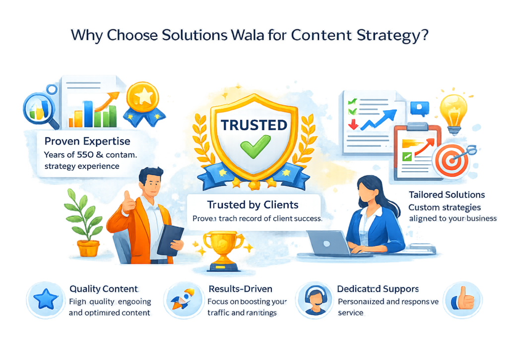 At Solutions Wala, we combine creativity with data-driven SEO strategies to create content that delivers results. Our team focuses on building content ecosystems that not only improve rankings but also support long-term business growth.