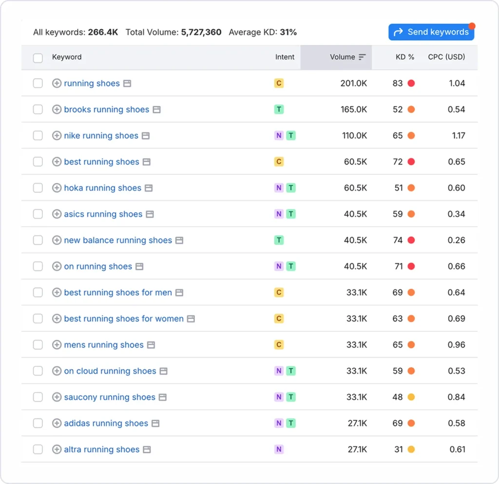 5. Group related keywords: Group close keyword variants and synonyms so one well-structured page can rank for several keywords. If keywords have the same meaning, you should likely use them on the same page.